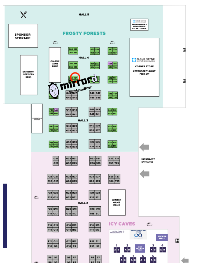 Our booth number is R51, you can find us between the “classic game zone” and where you pick up your KubeCon + CloudNativeCon T-shirt.